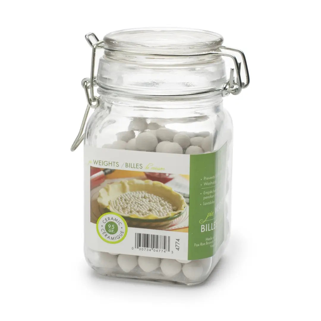 • Natural food-safe unglazed ceramic pie crust baking weights for quick, even conduction of heat used for blind baking homemade or frozen pie, quiche or tart crusts • Baking beans provide even weight distribution for bubble-free pie crusts without shrinkage • Reusable stoneware baking weights are oven-safe up to 446 degrees • To use: place parchment paper over pie dough, then place baking beads evenly on top to effectively weigh down pie shell • 8.8-ounces total weight; Comes in convenient glass storage container; Wash before first use, hand wash only
