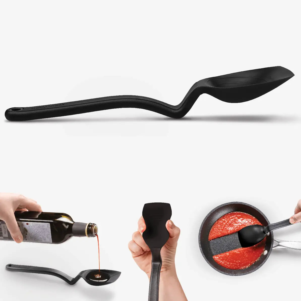 Supoon is a silicone spoon that scoops, measures and scrapes the bowl clean. Keep benches and counters clean and food hygienic thanks to Supoon’s unique handle design which sits your spoon up and off your bench. Its handle is even weighted so it can be dipped in sauce and still never tip over. Supoon has a reputation for leaving nothing behind. Its flat silicone scraping tip and flexible squeegee sides scrape out every last piece of food from your pan or bowl. Scrape, measure (15ml tbsp & 5ml tsp), stir, mix, scoop and serve using the same spoon – leaving you even less to clean up. Silicone spoon is safe to use on non-stick cookware and is heat resistant to 260°C / 500°F.