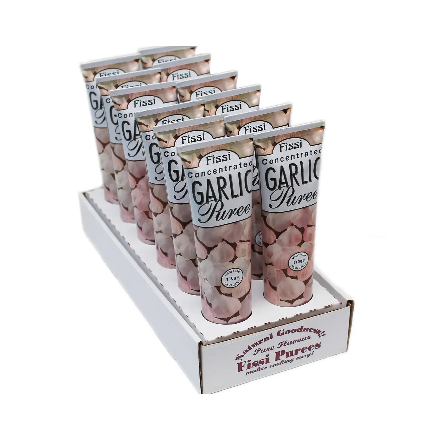 Fissi Garlic Purée is full-flavoured and made from fresh. A little squeeze is all you need to enjoy the pure taste of freshly crushed garlic without the fuss of peeling or crushing. This pungent purée can be added to soups and sauces, whilst you're stewing or sautéing; it is a great way to experiment with one of the UK’s most popular flavours – fresh Garlic. Dairy-free, Gluten-free, Nut-free, Sodium-free, Sugar-free, Vegan, Vegetarian and Whole Foods.