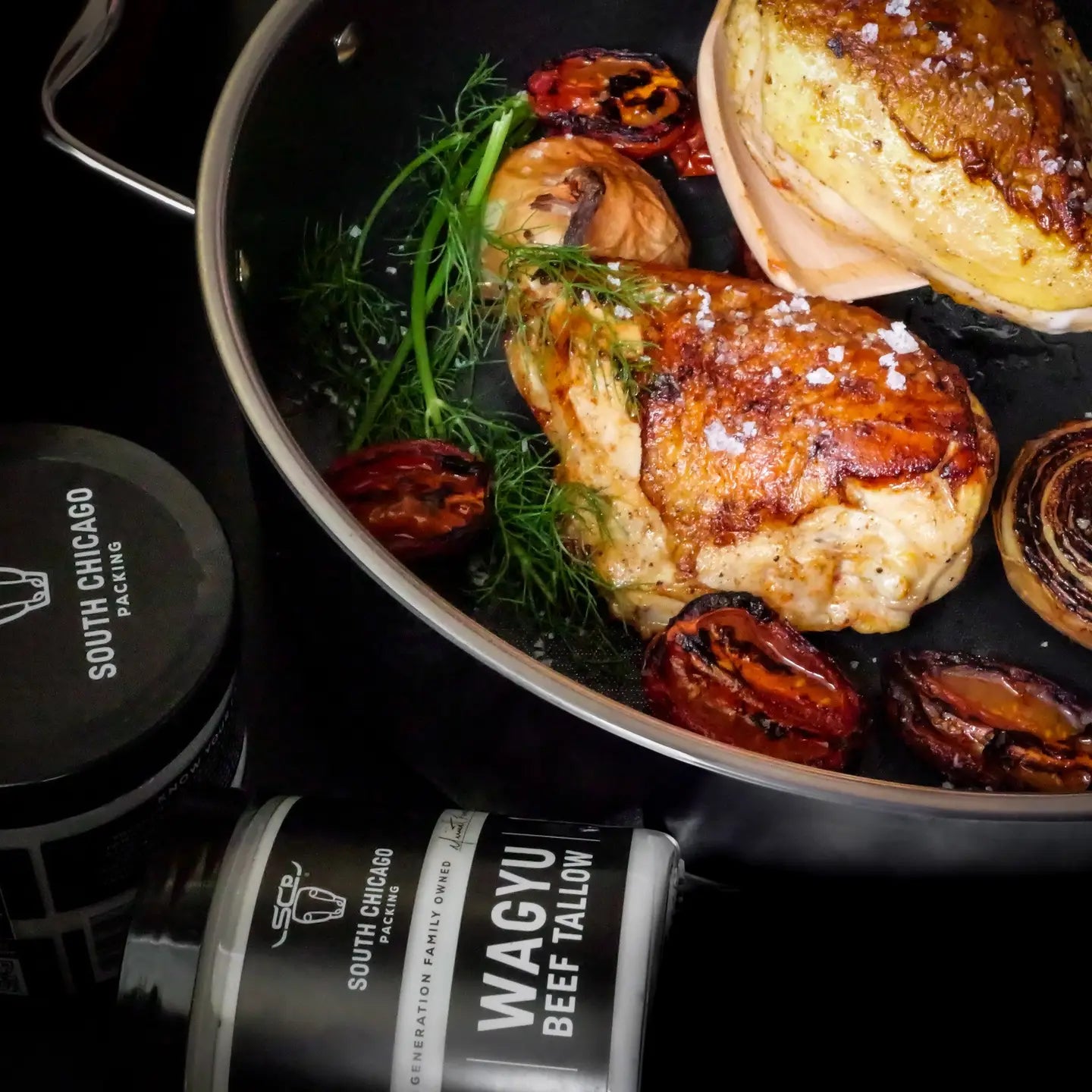 This product is perfect for the tallow curious and is currently available in case pack of 6 units. From ranch to table, South Chicago Packing’s Wagyu Beef Tallow is sourced from only the best. This product is 100% premium rendered Wagyu beef fat. It is an easy to grab pantry staple. It upgrades and enhances flavor and richness to your meats, veggies, eggs and much more. Our Wagyu Beef Tallow is a natural cooking fat that is Keto, Paleo, and Whole30 & gluten-free friendly. All of our products support nose-to-tail sustainability.